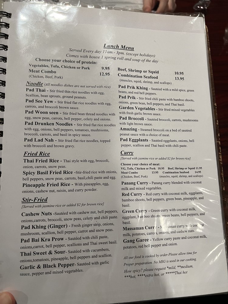 Excellent green curry, with green curry paste and spice of creamy sauce. Cooked with coconut milk, bell peppers, green beans, eggplants, bamboo shoots, and Thai basil